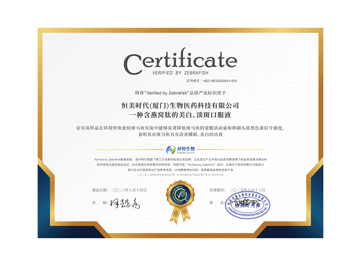 8月 2项产品取得环特生物斑马鱼检测功效证书